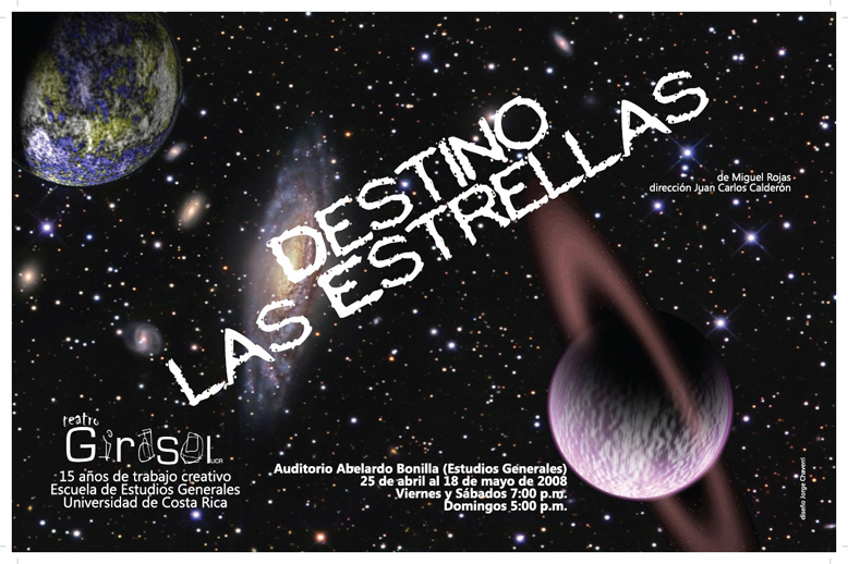 Con el objetivo de celebrar los 15 años de su fundación, el Teatro Girasol presenta a partir de este viernes 25 de abril, y hasta el domingo 18 de mayo, la obra “Destino las estrellas”, los viernes y sábados a las 7:00 p.m. y domingos a las 5:00 p.m., en el Auditorio Abelardo Bonilla, ubicado en el sótano de la Escuela de Estudios Generales, de la Universidad de Costa Rica (UCR).