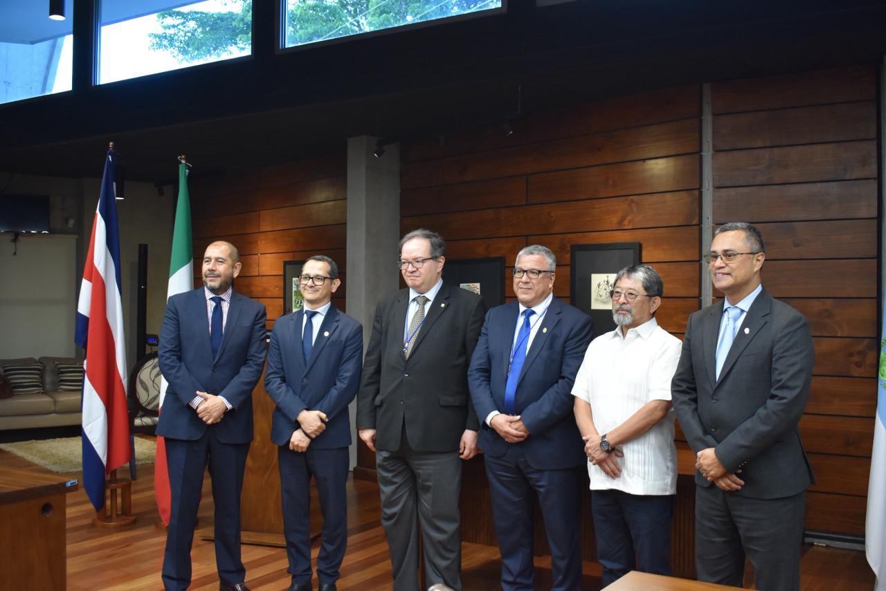 Autoridades universitarias y representantes diplomáticos participaron en el acto oficial de firma del nuevo convenio de cooperación entre la UCR y la UNAM. Foto cortesía de Rectoría.