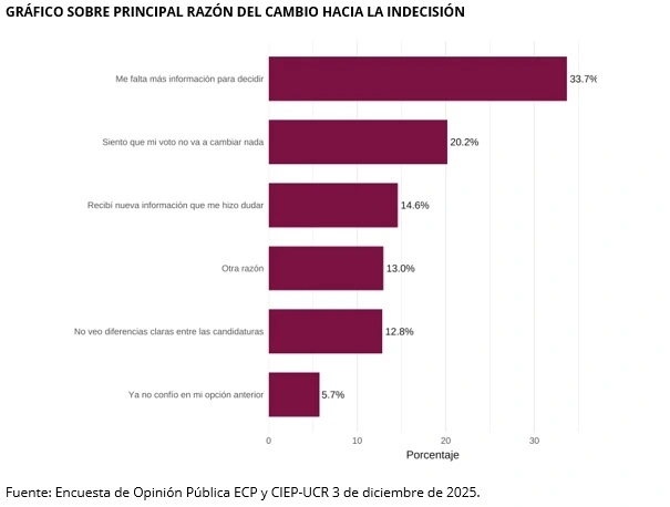 Sin embargo, las personas que dicen haber cambiado el voto, no implica necesariamente que haya escogido otra de las opciones que existen en la papeleta electoral, pues, aunque el 62.3 % dijo que sí se pasó su apoyo hacia otra candidatura, un 37.7 % afirmó no saber todavía por quién votar.