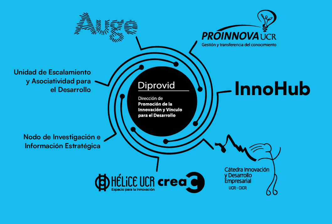 El InnoHub pertenece a la Dirección de Promoción de la Innovación y Vínculo para el Desarrollo (Diprovid) de la UCR y forma parte de todo un ecosistema de diversas unidades que, desde el 2005, se han creado para apoyar los procesos de transferencia tecnológica desde las diferentes competencias.