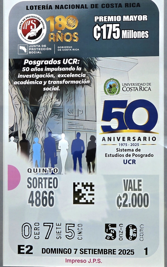 El billete de lotería del 50 Aniversario del Sistema de Estudios de Posgrado UCR