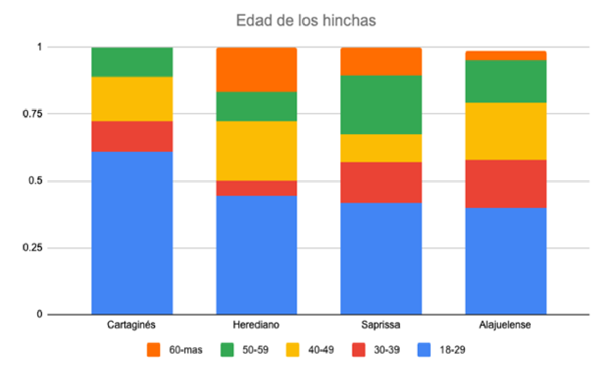 Además, el estudio muestra que las mujeres representan un sector menos vinculado con el balompié nacional. En equipos como Saprissa y Alajuelense, las aficionadas no superan el 36 % y 25 % de sus hinchas, respectivamente.